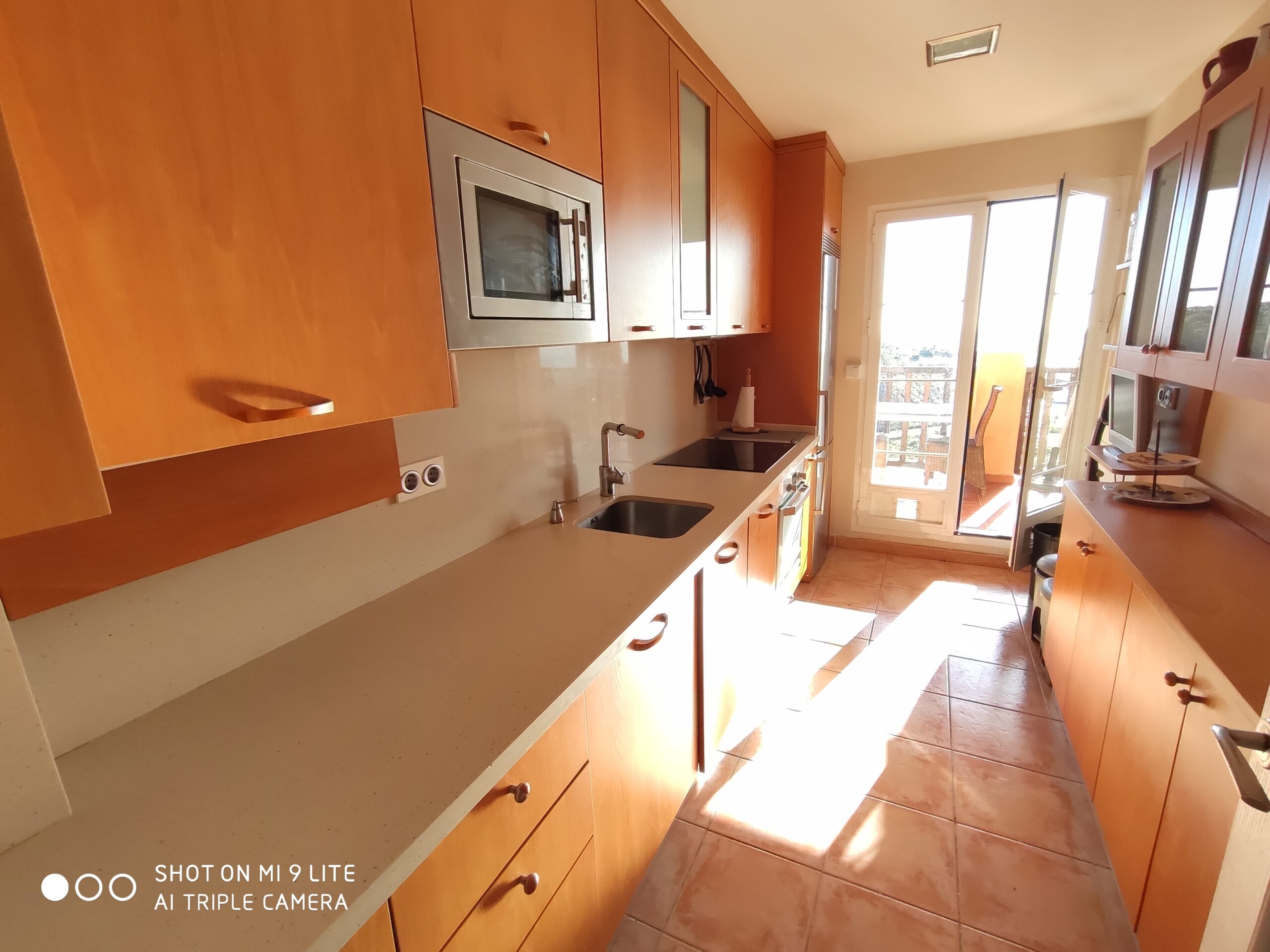 Alquiler de larga temporada en zona residencial de Lomas de Procusán de 2 habitaciones con armarios empotrados, 2 cuartos de baño, una terraza exterior muy amplia con vistas inmejorables al mar, cómodo salón comedor, aire acondicionado centralizado en toda la vivienda frio y calor, cocina independiente, lavavajillas, vitrocerámica y microondas etc. Una plaza de garaje subterránea incluido en el precio y ningún problema para aparcar coche adicional en la puerta muy bien comunicada con la autovía, también cuenta con piscina, jardines, pista de pádel y parque infantil comunitarios (gastos de comunidad incluidos) a medio kilómetro del centro comercial del Rincón y su supermercado. Colegio a pocos metros. Se requerirá nómina. Pida su visita.